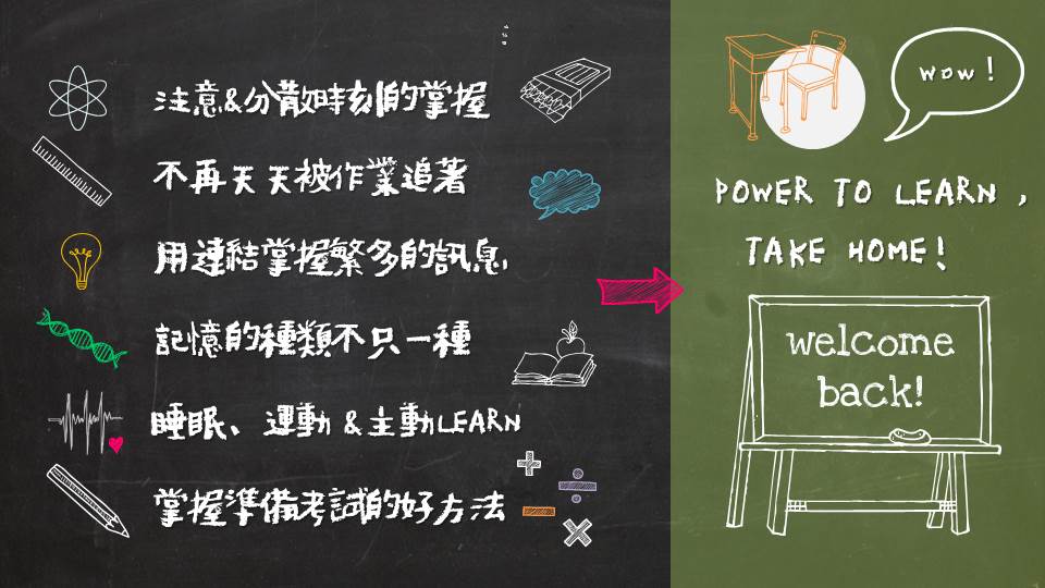 A: 請進來了解大腦喜歡怎麼理解跟記憶事情。聽過「圖畫散步」跟「主動回想」這兩個策略嗎?